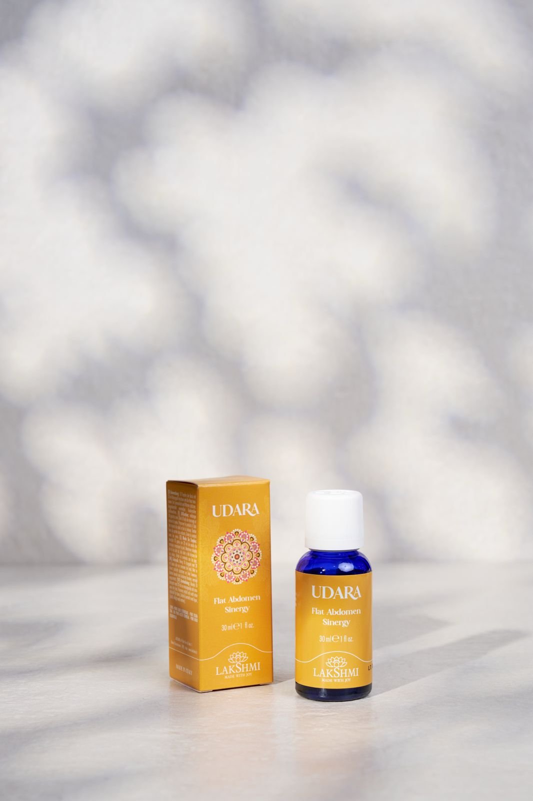 Sinergia Udara Lakshmi è una miscela di oli essenziali puri, perfetta per rilassare, riequilibrare e armonizzare corpo e mente. Ideale per Vata, allevia tensioni emotive e dona sollievo in caso di gonfiore addominale o stipsi. Una coccola aromaterapica completa per il tuo benessere.
